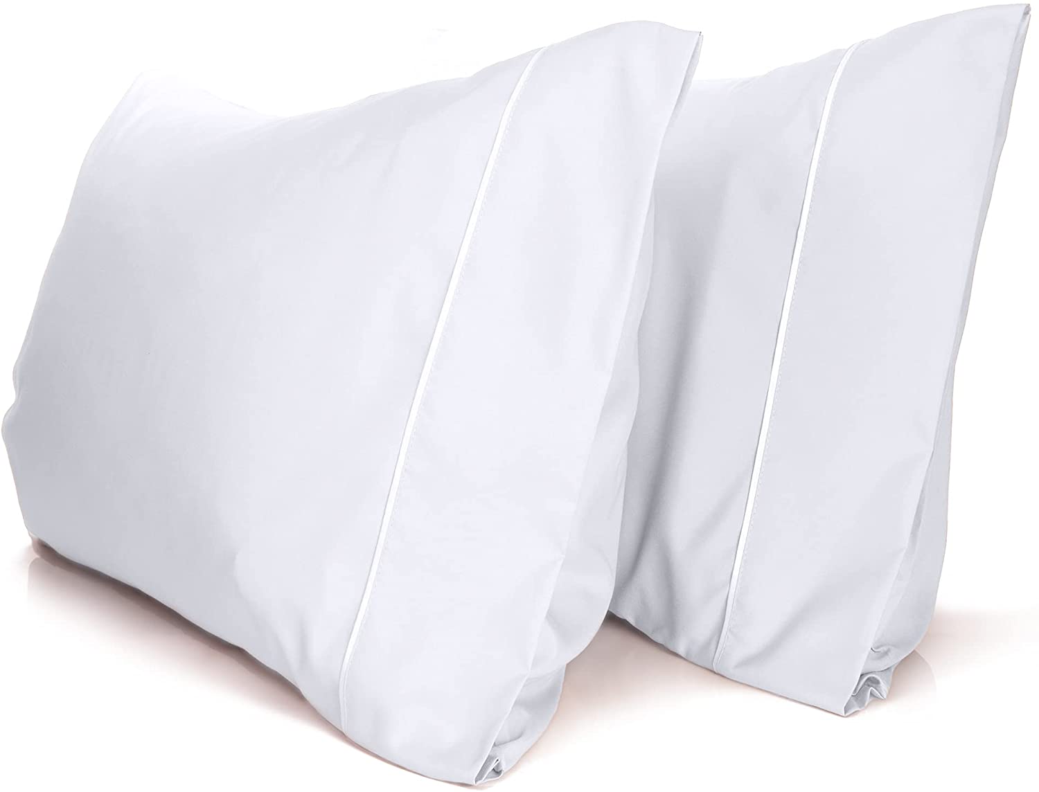 Collection Pillowcases 2 Pack Eco Friendly Wrinkle Free Cooling Pillow Cases With Satin Trim Machine Washable Hotel Bedding Silky Soft White Standard Queen Walmart Com