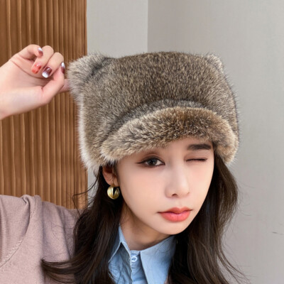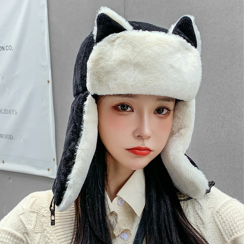 Ladies Trapper Hat Ski Ushanka Russian Cossack Corduroy Faux Fur Cat Ear Cute Ebay